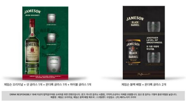 아이리쉬 위스키 ‘제임슨(JAMESON)’은 제임슨 오리지널과 제임슨 블랙 배럴로 구성된 선물세트 2종을 준비했다. '제임슨 오리지널' 세트는 샷, 온더락, 하이볼의 시그니처 배럴 글라스 3종을 각각 1개씩 포함하고 있어 글라스 수집가들에게 큰 관심을 받을 것으로 기대된다. '제임슨 블랙 배럴'은 셰리 캐스크와 두 번 태운 버번 배럴을 사용해 더욱 풍부하고 복합적인 부드러움을 지니며, 배럴 모양의 온더락 잔 2개가 포함돼 있어 받는 사람의 취향을 고려한 선물로 매우 적합하다.