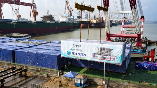 한진은 피지티와 지난 5월 계약을 체결하고 2차 전지용 리튬염 제조설비의 운송 전과정을 수행했다고 4일 밝혔다. 물량 규모는 총 33개의 제조설비 모듈 약 1830톤 가량이다.