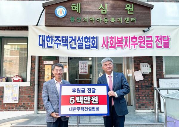 대한주택건설협회는 사회공헌활동의 일환으로 11일 서울 용산구 소재 아동양육시설 '혜심원' 등 전국 13개 지역에서 ‘2024 사회복지시설 후원금 전달행사’를 가졌다고 이날 밝혔다.