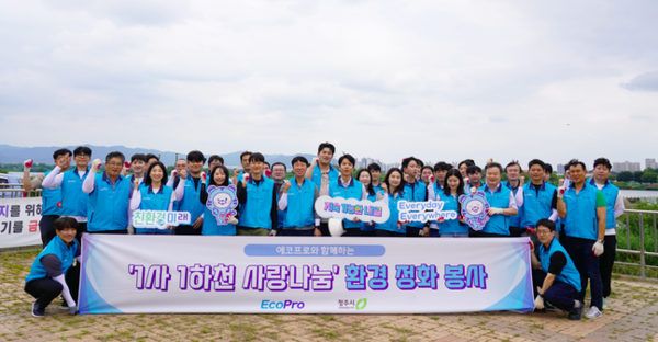 환경 정화 봉사활동도 진행됐다. 에코프로는 청주시와 함께하는 지역 하천 환경 정화 캠페인 '1사 1하천 사랑 운동'에 참여하고 있다.