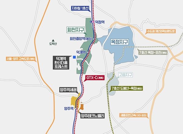 회천지구 일대를 띄우는 요인은 단연 덕정역에 정차하는 GTX-C 노선이다. 왕십리, 삼성역 등을 잇는다. GTX-C노선은 올 4월 착공식을 마쳤고, 정부 발표에 따르면 덕정~삼성역 이동 시간은 29분에 불과하다.