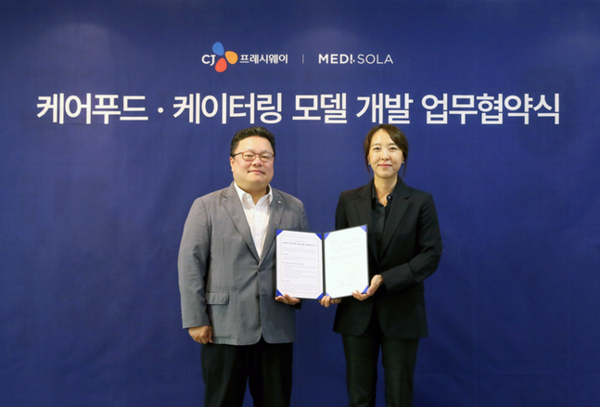 양사는 식자재 유통 사업 부문에서도 협력을 이어간다. CJ프레시웨이의 상품 기획 및 유통 역량과 메디쏠라의 임상 영양 특화 식단 및 케어푸드 개발 역량을 결합해 특수의료용도식품, 질환별 영양 식단 등 특수 경로 맞춤형 상품과 메뉴를 다양하게 선보일 계획이다.