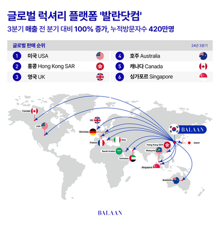 발란은 글로벌 온라인 플랫폼 '발란 닷컴'이 글로벌 시장에서 꾸준한 성장세를 이어가고 있다고 7일 밝혔다.