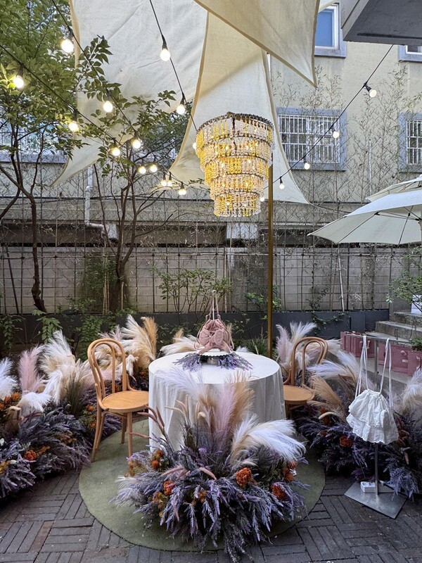 팝업 공간의 컨셉은 ‘가을의 프릴 파티’로, 로맨틱한 디자인과 소재를 적용한 제품들을 직접 착용하고 즐길 수 있는 최적의 공간으로 구성됐다. 채도가 낮은 색감과 갈대 등 가을을 연상시키는 오브제를 활용하고, 아떼 바네사브루노의 크리스탈 키링으로 완성된 화려한 샹들리에를 설치해 몽환적인 느낌을 극대화했다. 인증샷을 남길 수 있는 포토존도 구성돼 뜨거운 호응을 이끌었다.