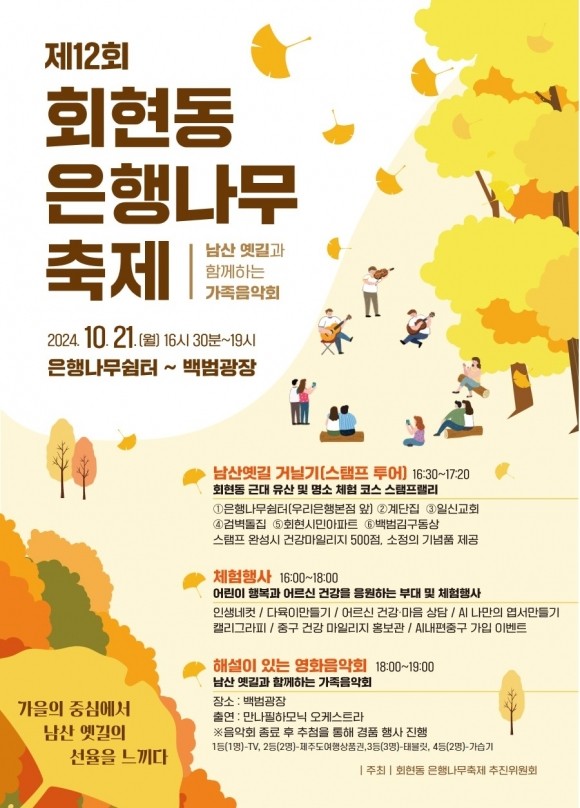 김길성 중구청장은 “500년 된 도심의 은행나무와 회현동 곳곳에 스며 있는 역사문화자원이 어우러진 특별한 축제”라며 “과거와 현재, 도시와 자연이 공존하는 회현동의 매력을 느끼길 바란다”고 말했다.
