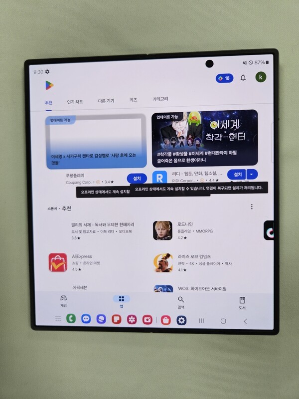 ![갤럭시 Z 폴드 스페셜 에디션(위) 디스플레이 크기가 갤럭시 Z 폴드6 디스플레이(아래) 보다 큰 것을 확인할 수 있다. [출처=이남석 EBN 기자]](https://cdn.ebn.co.kr/news/photo/202410/1640666_651473_321.jpg)