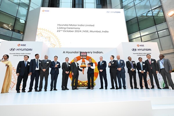 현대차는 22일(현지시간) 인도 뭄바이의 인도증권거래소(NSE)에서 정의선 회장 등 현대차 경영진이 참석한 가운데, 인도법인의 현지 증시 상장 기념식을 개최했다.