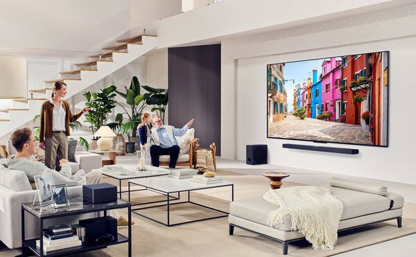 인공지능 음향 기술은 2채널 음원을 가상의 9.1.2채널로 변환해 풍성한 음향을 구현한다. AI가 목소리를 주변 소리와 구분해 또렷하게 보정하고 영상 속 소리를 TV 화면 중앙에서 나오는 것처럼 자연스럽게 들려준다.