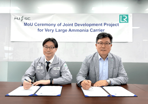 HJ중공업과 로이드선급은 지난 7월 차세대 초대형 암모니아 운반선을 공동 개발하는 내용의 양해각서(MOU)를 체결하고 약 6개월간 연구 활동에 집중해 왔다.
