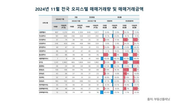 16일 빅데이터 및 인공지능(AI) 기반 상업용 부동산 전문 프롭테크 기업 부동산플래닛이 발표한 자료에 따르면, 2023년 11월 전국 부동산 거래량은 총 8만 1888건으로 전월 대비 9.6% 감소했다. 거래금액 역시 29조 3695억원으로 3.2% 줄어들었다.