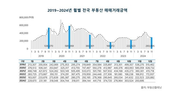 정수민 부동산플래닛 대표는 "11월 전국 부동산 시장이 전반적인 거래 부진을 나타낸 가운데 아파트와 주택의 거래 감소가 두드러진 달이었다"며 "10월 기준금리 인하에도 불구하고 대내외 경제적 여건 악화와 대출 규제 강화의 영향으로 풀이된다"고 분석했다.