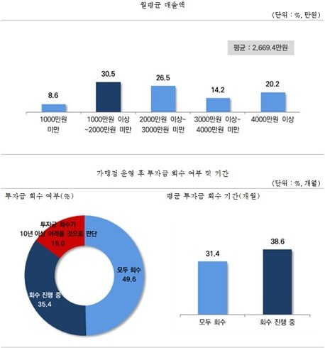 이들 점주는 투자금 회수까지 평균 31개월이 조금 더 걸렸다고 응답했다. '투자금 회수가 진행 중'(35.4%)이라고 응답한 점주는 투자금 회수까지 평균 38개월 넘게 소요될 것으로 예상했다.