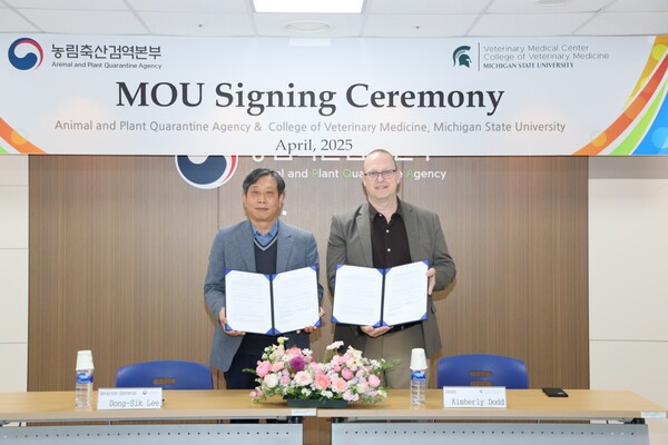 이에 농림축산검역본부는 지난 24일 수의법의 약독물 분야에서 세계적으로 우수 기관으로 평가받는 미국 미시간주립대학교와 약독물 분야의 진단 및 분석 기술 전수 및 연구 역량 강화를 위해 업무협약(MOU)을 체결했다.