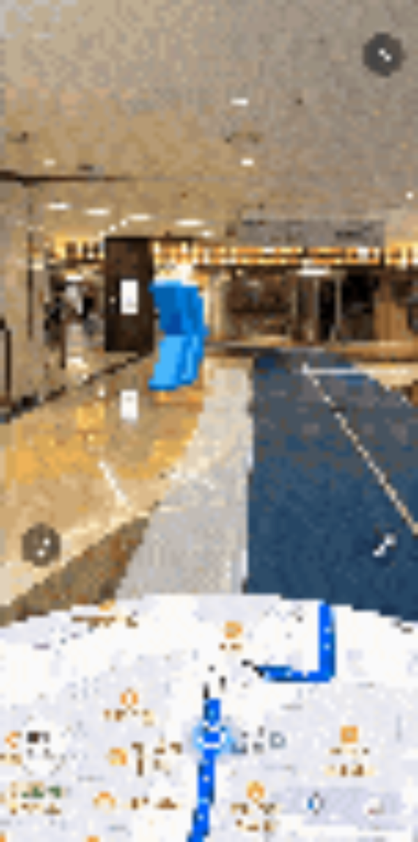 실내 AR 내비게이션은 GPS 신호가 닿지 않는 곳에서도 스마트폰 카메라만으로 이용자의 위치와 방향을 정확하게 인식해, AR로 길을 안내해주는 서비스다. 카메라로 주변을 스캔하면 목적지까지 이동 방향이 현실 공간 위에 직관적으로 표시되어, 대형 복합시설과 같이 복잡한 실내에서도 길을 헤매지 않고 쉽게 이동할 수 있는 것이 특징이다.