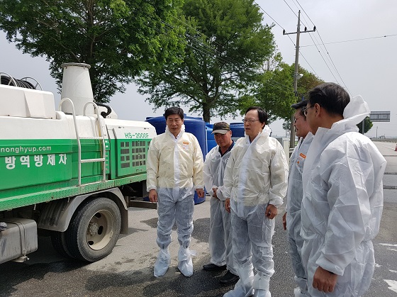 이날 현장을 방문한 김용환 회장은 "극심한 가뭄으로 인해 그렇지 않아도 농가의 피해가 심각한데 AI까지 확산되고 있어 심히 우려된다"며 "방역 등 초동 조치를 철저히 실시해 피해 확산을 막고 AI가 조기 종식될 수 있도록 농협이 최선의 지원을 다 해나가겠다"고 말했다.