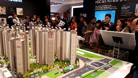 현대건설과 대림산업이 지난 27일 개관한 '고덕 아르테온' 견본주택에는 주말 3일 동안 4만2000여명의 인파가 몰렸다. 방문객들은 상담석에서 분양가, 청약자격, 대출조건 등에 대한 자세한 설명을 듣는 적극적인 모습도 보였다.