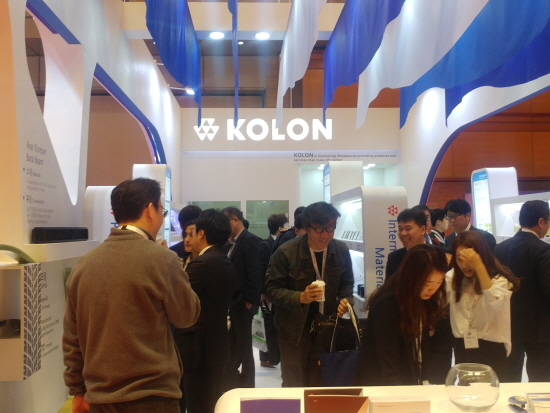 코오롱그룹 복합소재센터는 원소재부터 중간재 및 복합소재 부품에 이르기까지 다양한 제품을 전시해 이목을 끌었다.