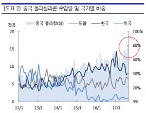 이처럼 폴리실리콘 수출이 실적에 중요한 부분을 차지하고 있는 상황에서 중국에서 한국산 폴리실리콘에 반덤핑 관세를 더 부과할 경우 OCI, 한화케미칼 등의 부담은 더욱 커질 수밖에 없다. 폴리실리콘 매출에 중국 수출이 차지하는 비중은 OCI가 약 70% 수준, 한화케미칼이 약 50% 수준으로 알려졌다.