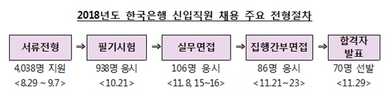 한국은행 관계자는 이번 채용에 대해 "직무능력 중심의 채용을 위해 연령, 학력 등을 지원서 작성항목에서 제외하는 등 블라인드 채용을 강화했다"고 설명했다.