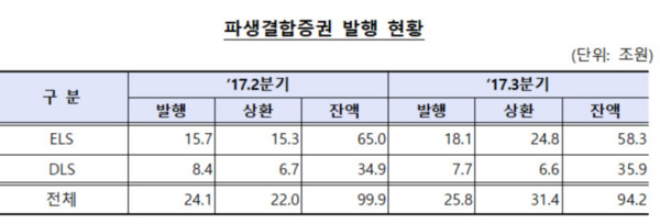 금감원 자본시장감독국 관계자는 “3분기 파생결합증권 발행규모도 증가했지만 상환규모가 더욱 크게 늘어나면서 발행잔액이 감소했다”고 설명했다.