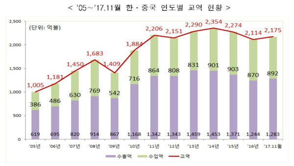 이로써 우리나라 대중 무역수지는 390억 달러 흑자를 기록했다. 이는 전년대비 16.7% 늘어난 수치다.