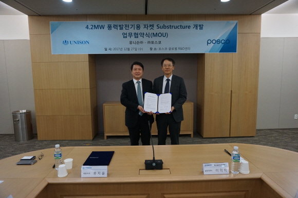 이번 MOU는 유니슨이 개발하고 있는 4.2MW 풍력발전기용 자켓 하부구조(Substructure) 관련 설계기술 분야에서 상호 협력하는 것뿐만 아니라 해상풍력사업에 공동으로 참여 또는 협력하는 방안을 검토하는 내용까지 포함하고 있다.