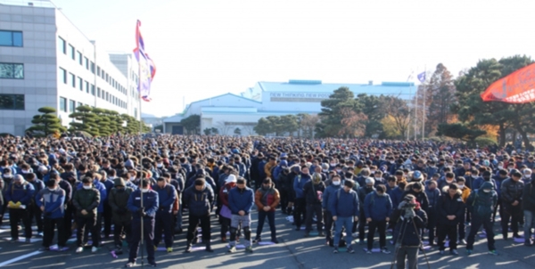하부영 노조위원장은 “사측이 잠정합의안에서 추가 제시안 없이 지부를 설득대상으로 삼는다”며 “변화된 안 제시를 촉구하는 파업과 동시에 조기 타결이 어렵다면 2018년 장기 투쟁은 불가피하다”고 밝혔다.