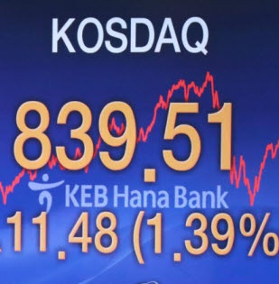 코스닥 지수는 전 거래일 보다 11.48포인트, 1.39%오른 839.51에 마감했다. 코스닥 지수가 종가 기준으로 830선을 넘어선 것은 지난 2002년 4월 19일 858.80 이후 15년만에 가장 높은 수치다.
