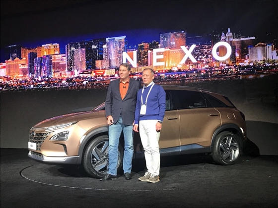 현대자동차는 이날 수소전기차 '넥소(NEXO)'를 공개했다. 넥소는 코드명 'FE'로 개발됐으며 오는 3월 글로벌 출시를 앞두고 있다. 현대차는 현지에서 자율주행 기술을 시연하고 평창동계올림픽에서도 경기장 주변을 왕복하는 자율주행 체험 차량으로 활용할 계획이다.