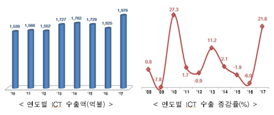 ICT 수출은 2017년 2월부터 11개월 연속 월별 최고액을 기록했으며 연간 최대 실적을 달성했다. 이전까지 ICT 최고 연간 수출액은 2014년 기록한 1762억달러였다.