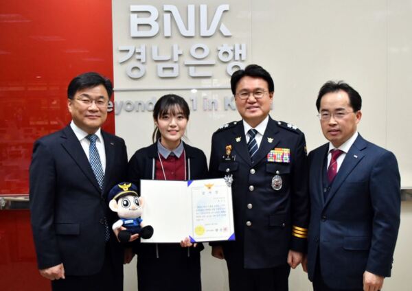 BNK경남은행은 야음동지점에 근무하는 행원이 전기통신 금융사기 피해를 예방한 공로로 울산지방경찰청(청장 황운하)으로부터 '감사장'을 받았다고 18일 밝혔다.