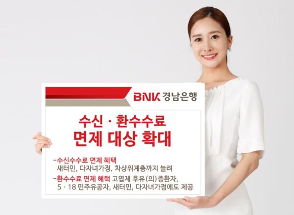 BNK경남은행은 사회적 배려 대상자들의 금융서비스 이용 부담 경감을 위해 수신·환수수료 면제 대상을 확대했다고 22일 밝혔다.