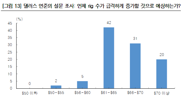 한국투자증권 서태종 연구원은 "단기적으로 유가는 양호한 흐름을 나타낼 것"이라면서도 "EIA가 유가 상승을 이유로 올해 미국 산유량 전망치를 재차 상향조정해 미국발 공급 증가에 대한 우려가 완전히 해소된 것이 아닌만큼 아직 고유가로의 회귀를 논하기에는 이른 시점"이라고 말했다.