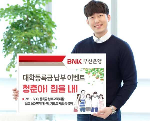 BNK부산은행이 내달 30일까지 대학등록금 납부 이벤트인 '청춘아! 힘을 내!'를 실시한다고 1일 밝혔다.