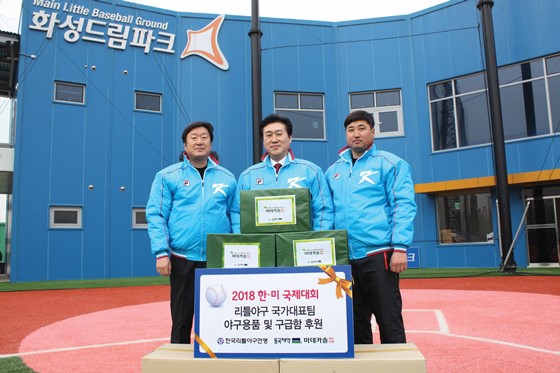 지난달 31일 경기도 화성에 위치한 국내 최대 규모의 리틀야구 전용경기장 화성드림파크에서 진행된 전달식에는 동국제약 서호영 이사와 한국리틀야구연맹 박원준 사무처장을 비롯해, 리틀야구 대표팀 최준원 코치 등 관계자들이 참석했다.
