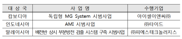 수출 시범사업은 한전과 중소기업이 협력연구를 통해 개발된 우수제품이나 시스템을 해외에 시범설치 후 현지 환경에 적합한 성능임을 실증해 후속 수출을 수주하기 위한 사업이다.