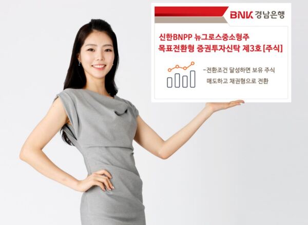 BNK경남은행은 전환조건을 달성하면 보유 주식을 매도하고 채권형으로 전환하는 '신한BNPP 뉴그로스중소형주 목표전환형 증권투자신탁 제3호(주식)'을 오는 26일까지 판매한다고 19일 밝혔다.
