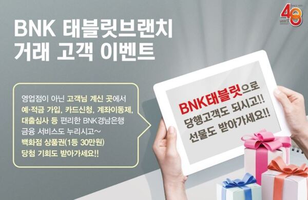 BNK경남은행은 오는 5월 18일까지 ‘태블릿브랜치 거래 고객 이벤트’를 진행한다고 23일 밝혔다.