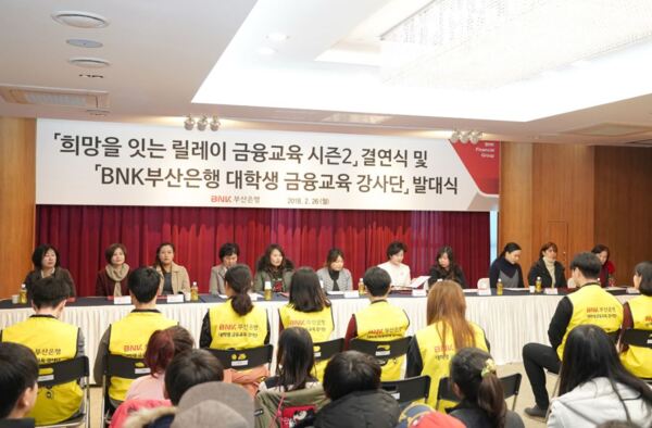부산은행의 ‘희망을 잇는 릴레이 금융교육’은 지역아동센터와 협약을 맺고 사회취약계층 및 다문화가정 등의 지역 초·중·고 학생에게 금융교육을 제공하는 사회공헌 프로그램이다.