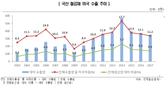 철강업계 관계자는 "대미 수출량이 줄어드는 건 그동안의 무역규제 때문"이라며 "국내 철강 수급 변화 및 타 국가의 수입규제를 예의주시해야 한다"고 설명했다.