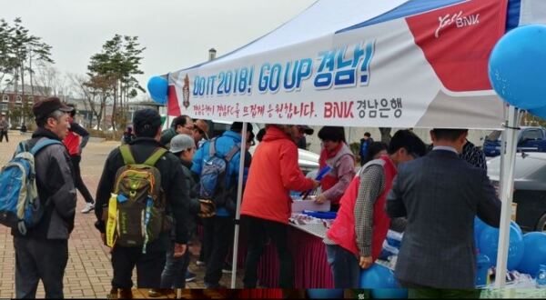 창원지역 봉사대와 경남도청지점 직원 10명은 창원축구센터 앞에 간이 부스를 마련하고 2018 K리그1 경남FC 대 상주 상무 경기를 관전하러 온 관중들에게 부부젤라와 풍선 등 응원 도구를 나눠졌다.