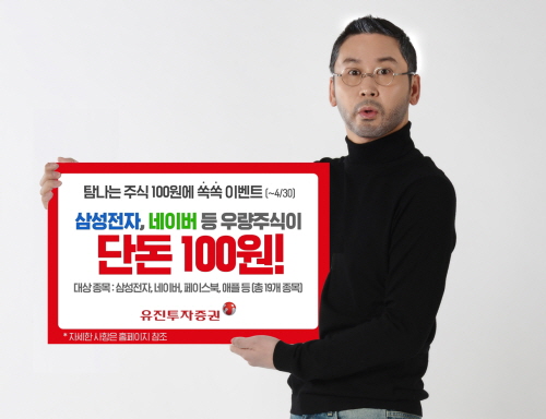 유진투자증권은 삼성전자, 네이버 등 우량기업 주식을 단돈 100원에 매수할 수 있는 '탐나는 주식 100원에 쏙쏙 이벤트'를 내달 30일까지 실시한다.
