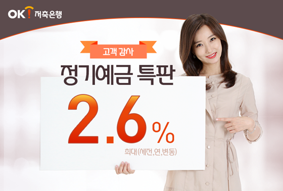 OK저축은행은 18일 2000억원 한도로 최대 2.6%(세전, 연) 정기예금 'OK안심정기예금' 특판을 시작한다고 밝혔다.
