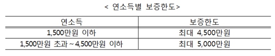 보증한도는 연소득에 따라 다르며 최대 5000만원 이내에서 임차보증금의 80%까지 지원된다. 또한 일반 전세자금보증보다 0.1%포인트 보증료를 우대해준다.