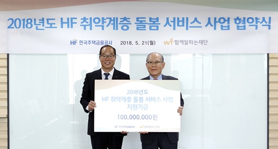 한국주택금융공사(HF)는 재단법인 함께일하는재단과 '2018년도 HF 취약계층 돌봄서비스' 사업 협약을 체결했다고 21일 밝혔다.