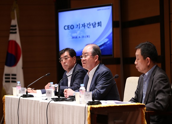 정 사장은 "지난해 4월까지 4500억원을 사용했다. 올해도 최대로 계산했을 때 1조원까지 늘어날 수 있지만 상환 과정을 거치면 1조원 한도로 자금을 운용할 수 있을 것 같다"며 "앞으로도 영업활동을 통한 이익 창출로 최대한 채무를 축소하도록 노력하겠다"고 덧붙였다.
