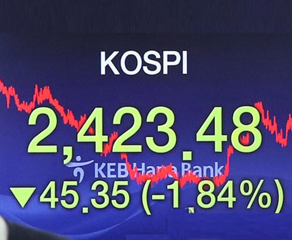 이날 코스피는 전 거래일보다 45.35포인트(1.84%) 내린 2423.48로 장을 마쳤다.
