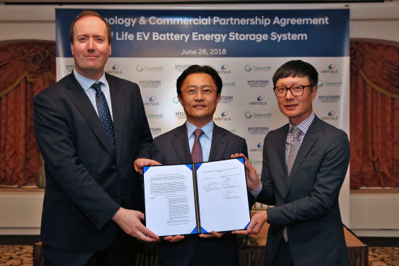 현대차그룹은 26일 ‘재활용 배터리 ESS’ 개발의 가속화 및 사업성 확보 차원에서 세계적인 에너지기업인 핀란드의 ‘바르질라(Wärtsilä)’社와 전략적 파트너십 협약을 체결했다고 밝혔다.