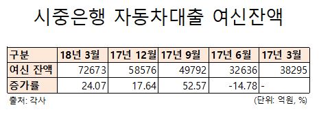 자동차금융 관련 여신이 큰 폭 늘고 있지만 은행의 경우 캐피탈사나 카드사를 위협하기에는 걸림돌이 많다는 분석이 나온다.