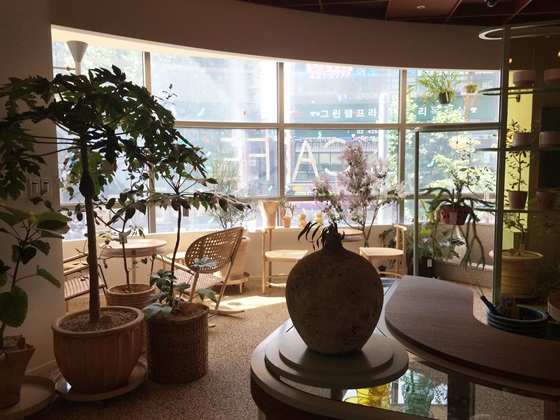 컬처뱅크 3호점에 들어서면 초록이 가득한 여러 식물들이 고객들을 맞이한다. 자연주의를 지향하는 메뉴로 구성된 카페를 비롯해 도심 속 자연을 주제로 한 각종 기획 상품의 전시 및 판매공간도 마련돼 은행 지점에 대한 기존 이미지의 획기적 전환을 시현했다.